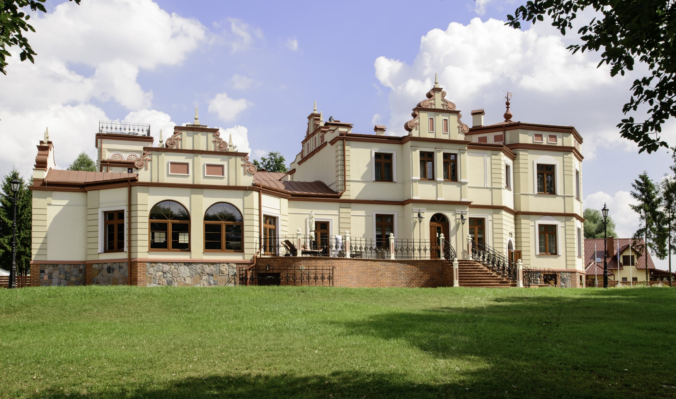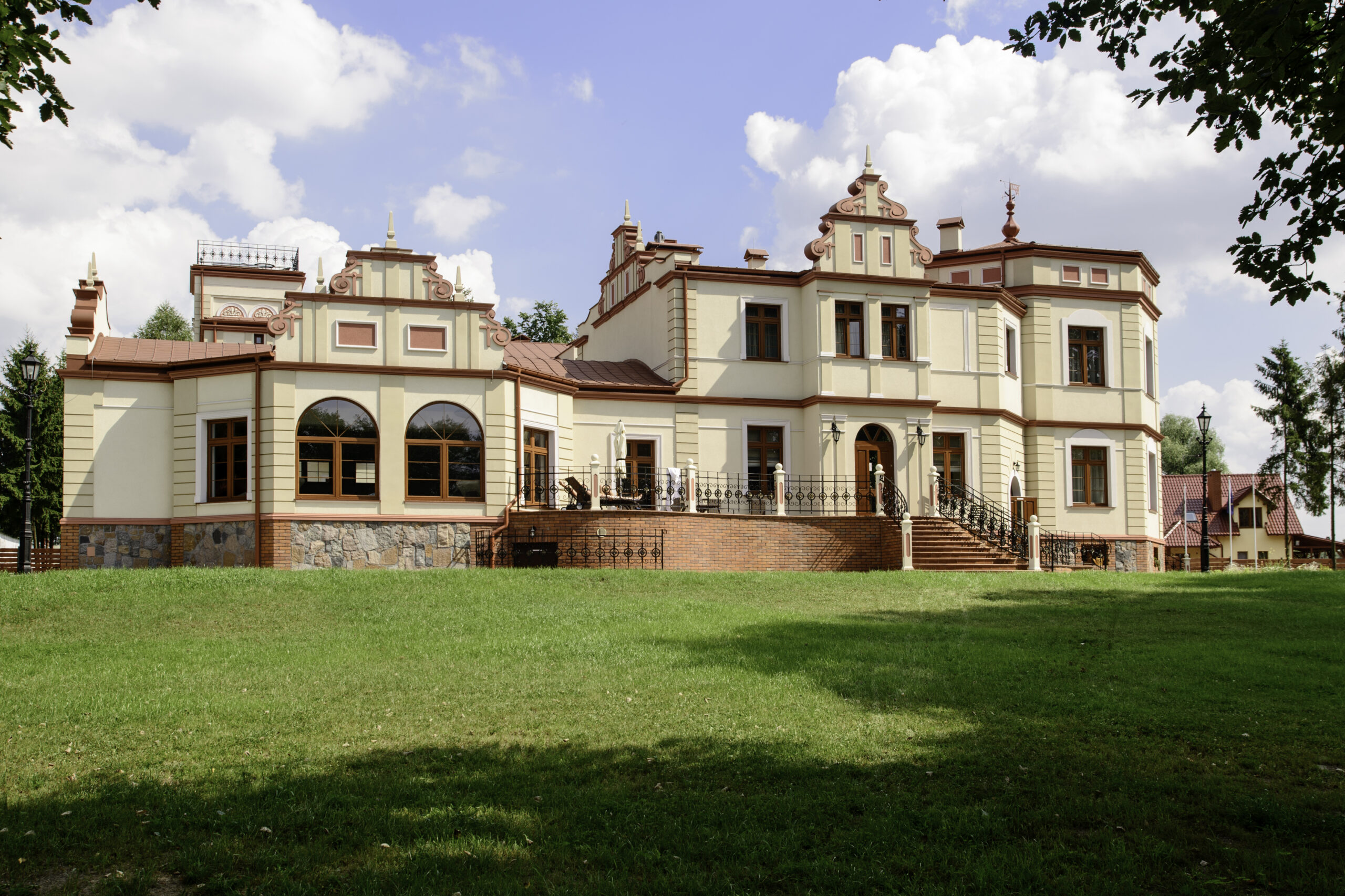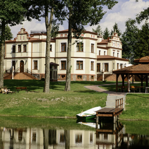 Położony w starym, wyjątkowo pięknym parku, który już sam w sobie jest zabytkiem, wybudowany w 1880 roku przez ród Hugo Kressmanna. Przez stałych bywalców uważany za jedyną w swoim rodzaju perłę. Odrestaurowany i odnowiony kusi przepychem i luksusem. Bardzo kameralny obiekt, który oferuje komfortowy wypoczynek i niezapomniane wrażenia z dala od wielkomiejskiego zgiełku oraz cywilizacji. Swoje miejsce odnajdą tu rodziny, nowożeńcy jak i biznesmeni. Park przypałacowy bogaty jest w wiele gatunków drzew m.in. starodrzew.